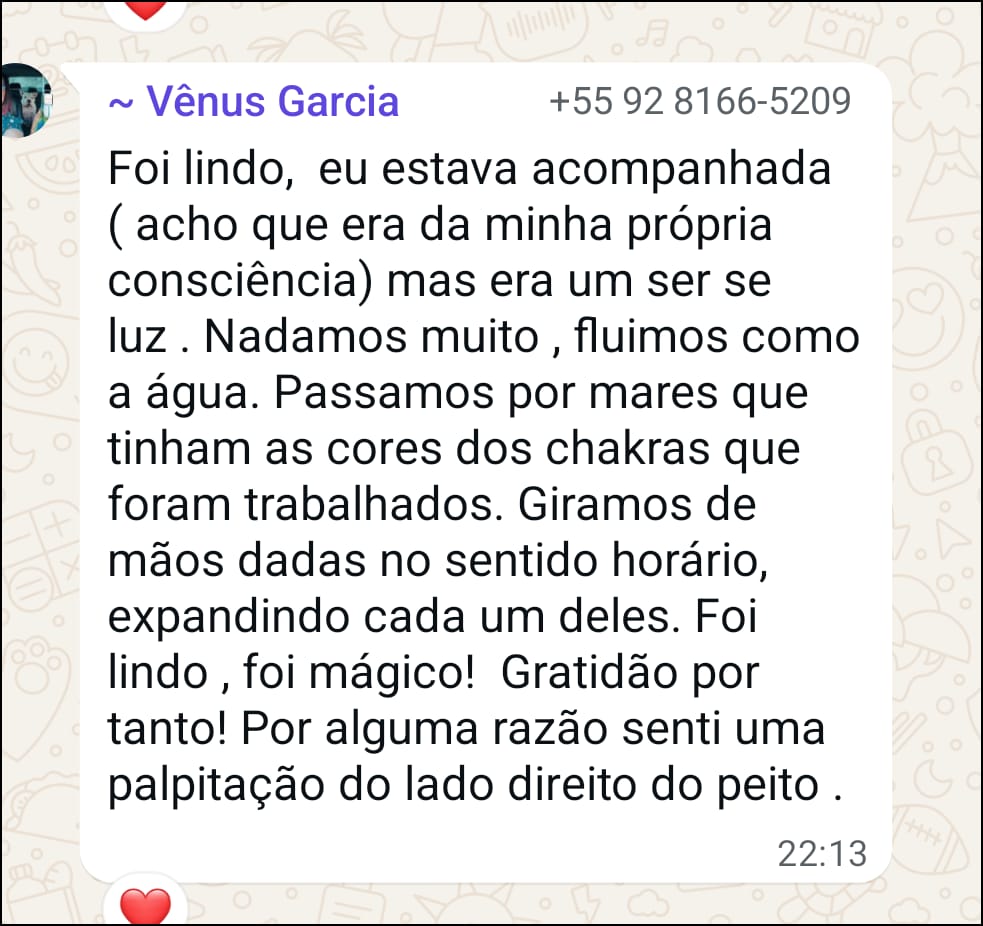 Ela vai ensinar você a canalizar com presença, consciência e intenção, evoluir como ser humano, ter mais clareza sobre decisões, ajudar sua família, atuar com mais propósito no seu trabalho, sentir a leveza de estar em conexão com algo maior.