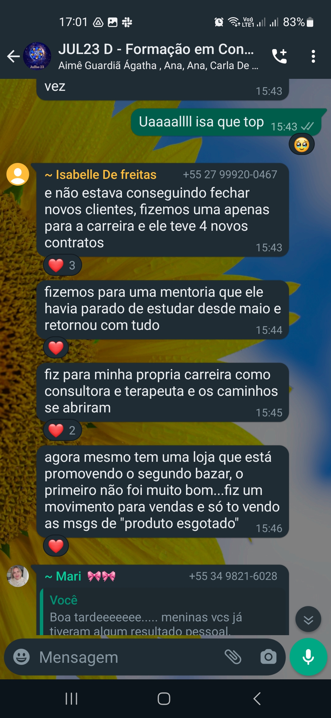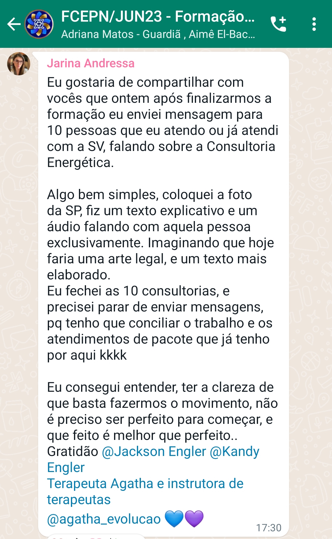 Essa é realmente uma formação que vai apoiar as pessoas na sua evolução e elevação, e também trazer um aspecto de leveza para as questões materiai
